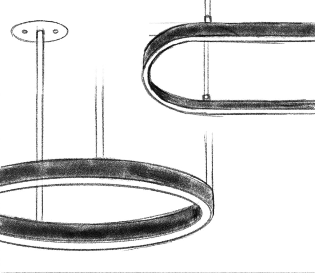 SERRES s’inspire de la forme des cerceaux et de la ville de Serres, en Grèce. Son anneau lumineux évoque le mouvement continu et l’harmonie des lignes architecturales méditerranéennes. Suspendu dans l’espace, SERRES dessine un cercle de lumière élégant, à la fois structurant et aérien.